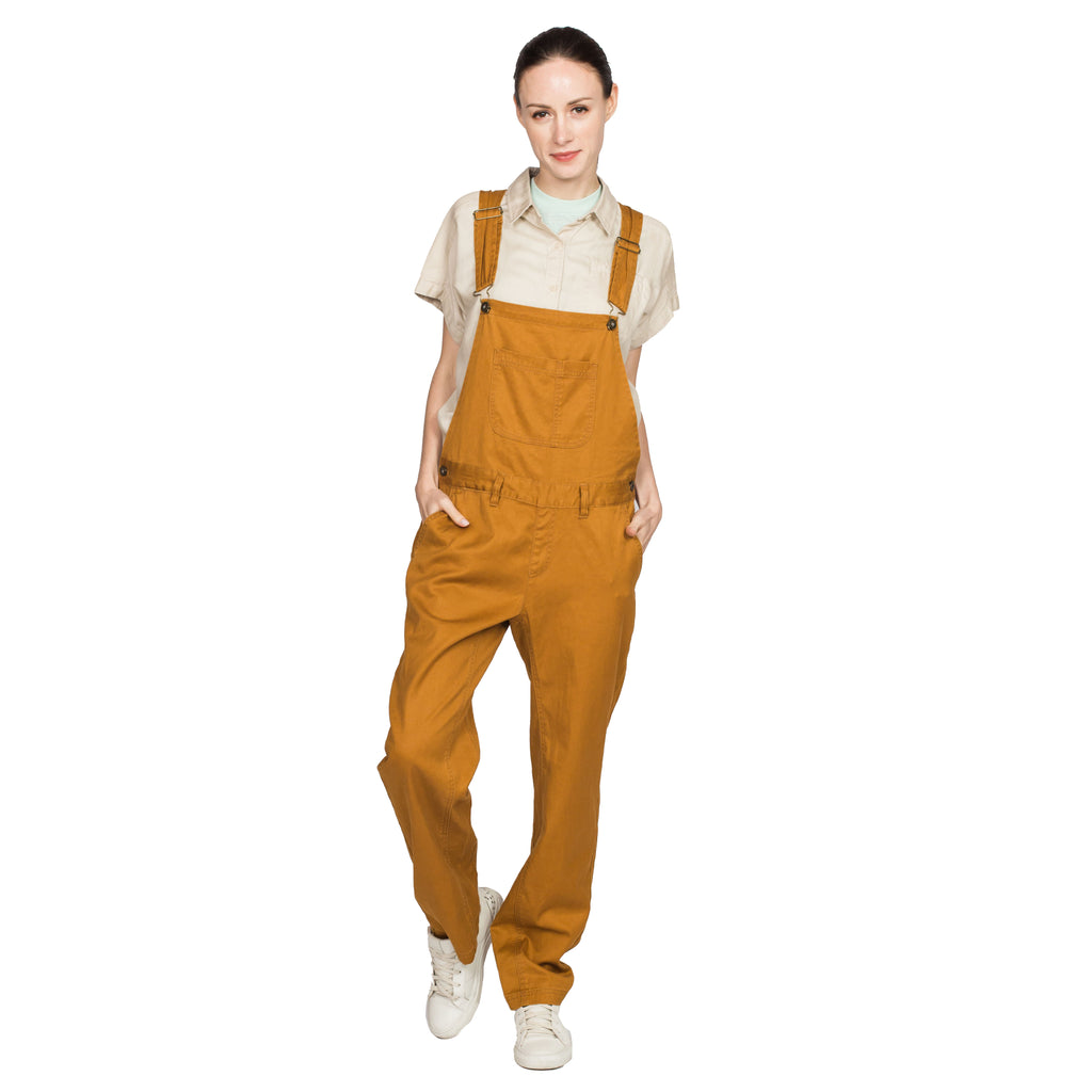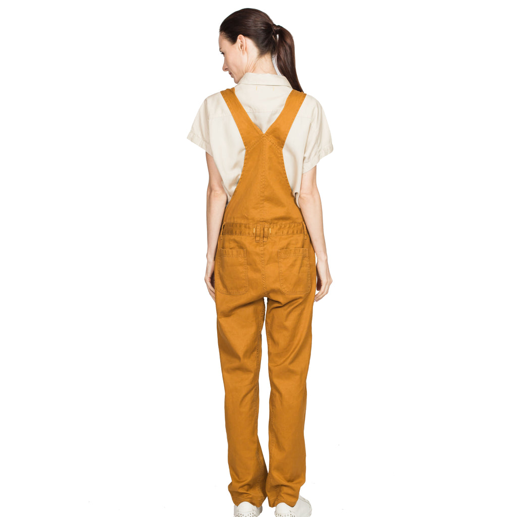 Adjustable straps to fit various heights. Tack button closure at side seams. Full inseam gusset for comfort. Stash pocket. Back drop in pockets. Front hand pockets.